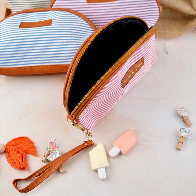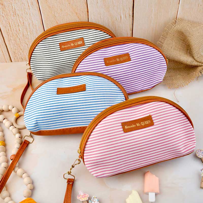 کیف آرایشی نیم گرد راه راه کد ۲۰۰۷